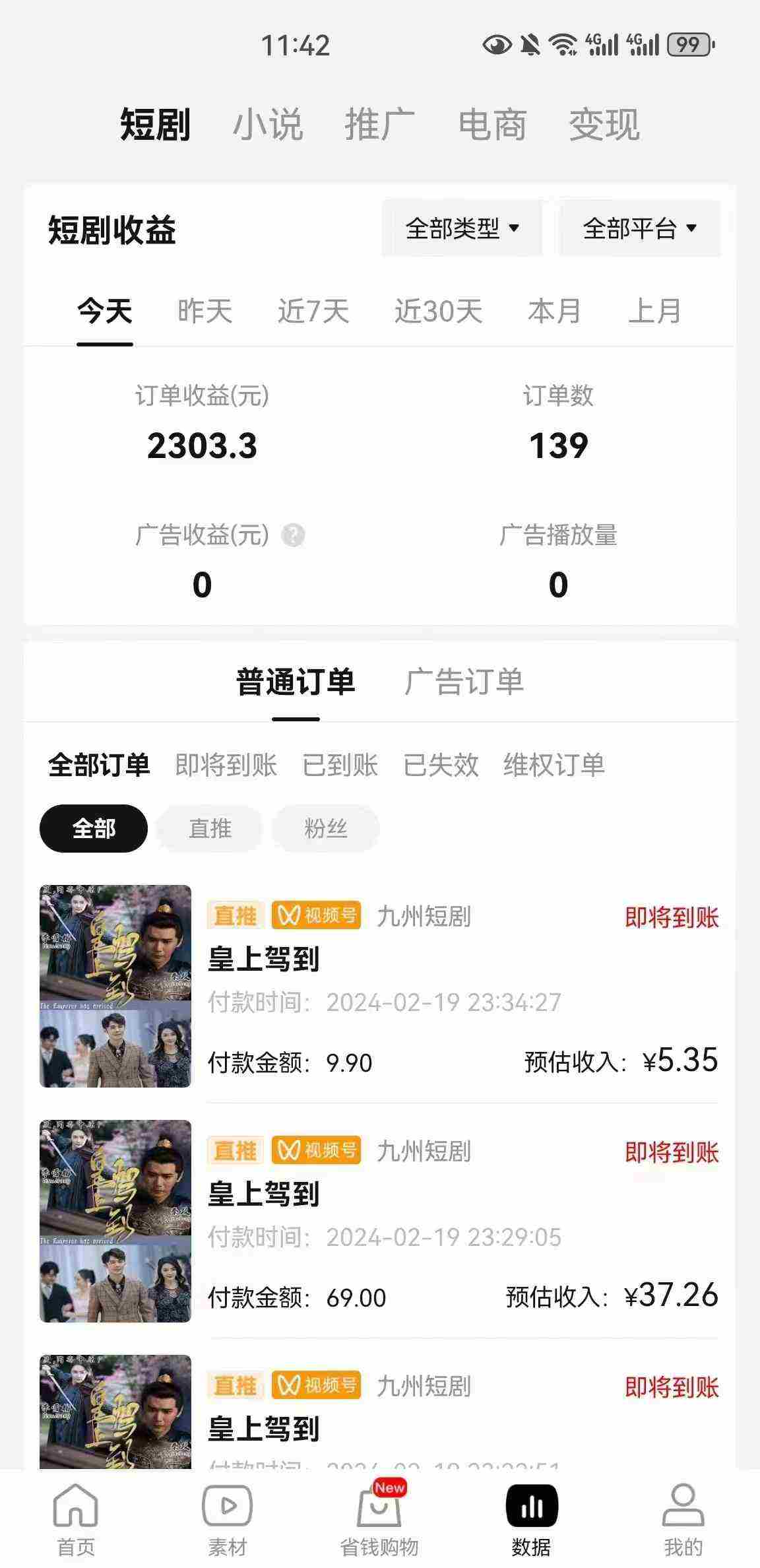 很多人说短剧推广赚不到钱,那是你不会做,其他平台现在那么卷当然挣不到大钱,但是视频号不一样,新平台流量大,目前做的人少,先上车的先吃肉。而且抖音、快手等大公司都亲自下场做短剧平台,可想而知背后有多大的市场。短剧为什么那么火,因为都是爽剧,霸道总裁爱上我,嫁入豪门、屌丝逆袭。都是抓人眼球的东西,看了就停不下来,所以很容易产生冲动消费,我们拿客户充值的提成。爆一条视频轻松4位数,按照我说的方法不但制作简单还很容易爆,保姆级教程,跟着学就行
